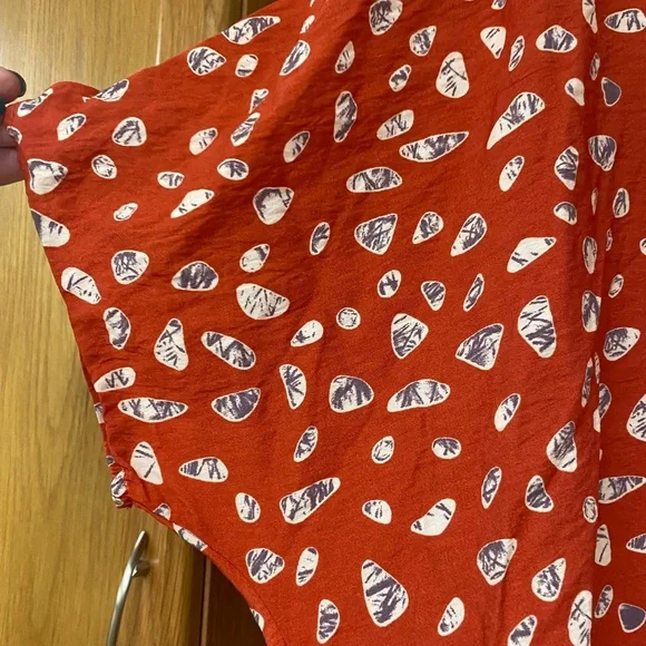 Designed for relaxed layering and everyday ease, this oversized top offers generous coverage and a flattering silhouette. With its rust-red hue
