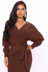 Crafted from a soft and stretchy knit blend, the Mona Sweater Midi Dress offers all-day comfort while maintaining a polished look. The relaxed dolman sleeves provide an easy, draped fit, while the adjustable tie waist with self belt cinches the waist for a customized and figure-flattering shape. Finished with side slits for added movement and modern style, this dress is a versatile must-have for your seasonal wardrobe.